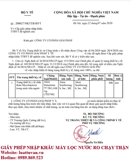 + Giấy phép nhập khẩu máy lọc nước RO chạy thận