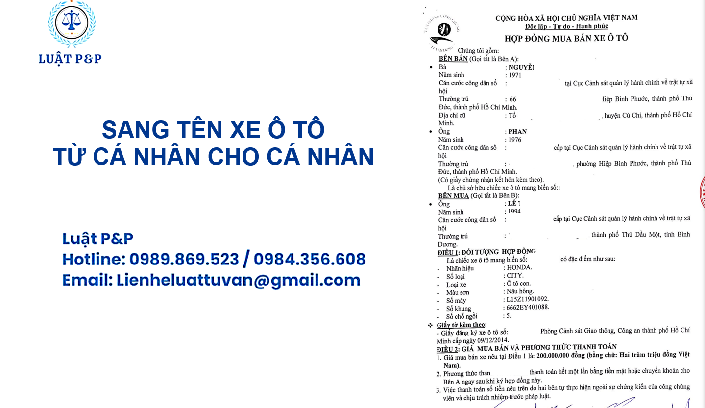 Trên đây Luật P&P đã khái quát cho bạn đọc trình tự, thủ tục thực hiện sang tên xe ô tô từ cá nhân cho cá nhân theo quy định mới nhất hiện nay của Bộ Công an.