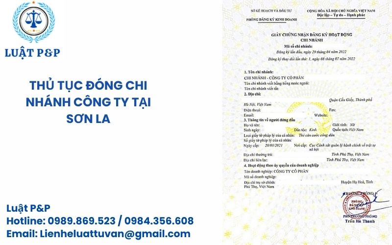 Dịch vụ thực hiện thủ tục đóng chi nhánh công ty tại Sơn La của Luật P&P