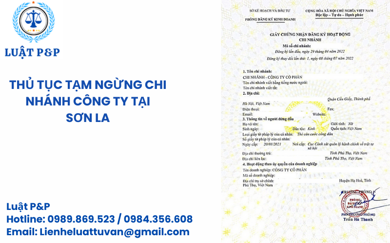 Dịch vụ thực hiện thủ tục tạm ngừng chi nhánh công ty tại Sơn La của Luật P&P